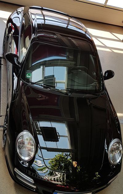 Der UNI – schwarze Porsche 911 hatte viele tiefe Kratzer und Gebrauchsspuren.